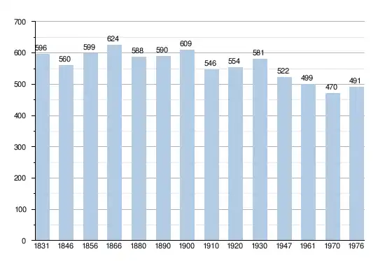 - Sources : INS, Rem. : 1831 jusqu'en 1970 = recensements, 1976 = nombre d'habitants au 31 décembre.