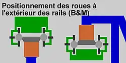 La compagnie utilise un design de rails inspiré par la première génération de montagnes russes Giovanola / Intamin. Les roues des trains B&M s'emboîtent à l'extérieur des rails tubulaires. Ces rails sont reliés de l'intérieur à une porteuse en forme de prisme par de minces plaques d'acier trapézoïdales. La porteuse est légèrement en dessous de la paire de rails et soutenue par de larges piliers cylindriques.
