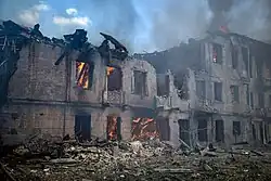 - ↑ (uk) Olena Burtseva, « Among the victims of the explosions - a child: it became known about the damage to 2 schools and a library in Dnipro », Informator, (consulté le )