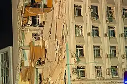 « Death toll from Russian attack on Dnipro rises to two, woman's body found », Ukrainska Pravda, (consulté le ) - ↑ (uk) « 18 apartments of the house, where the Russian hit « Shahed», will be temporarily relocated: the city compensates the owners for the rent », Informator, (consulté le )