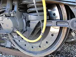 Le système de freinage, à disque plus fonction « grande puissance »[7], officiant sur de grandes roues (Ø1 250 mm soit 49"), est conçu par Knorr-Bremse. Son effort maximal est de 240 kN. Un dispositif anti-enrayage le complète, ainsi que quatre FIS (Frein d'Immobilisation et de Stationnement, un par essieu).