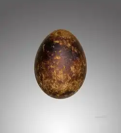 La femelle pond entre 1 et 3 (généralement 2) œufs blancs fortement tachés de brun-rouge, dont les dimensions moyennes sont de 52 x 41 mm pour un poids moyen de 49 g[11]. Les œufs sont pondus avec 3 à 5 jours d'intervalle; l'incubation débute dès le premier œuf pondu.