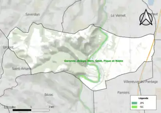 et une ZNIEFF de type 2[Note 5],[35] : « L'Ariège et ripisylves » (1 975 ha), couvrant 56 communes dont 43 dans l'Ariège et 13 dans la Haute-Garonne[39].