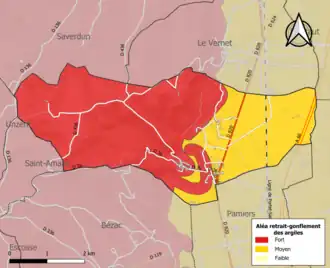 Les mouvements de terrains susceptibles de se produire sur la commune sont soit des glissements de terrains soit des mouvements liés au retrait-gonflement des argiles. Près de 50 % de la superficie du département est concernée par l'aléa retrait-gonflement des argiles, dont la commune de Bonnac[47]. L'inventaire national des cavités souterraines permet par ailleurs de localiser celles situées sur la commune[48].