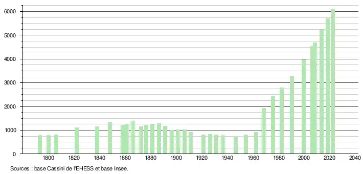 - ↑ Fiches Insee - Populations de référence de la commune pour les années 2006, 2007, 2008, 2009, 2010, 2011, 2012, 2013, 2014, 2015, 2016, 2017, 2018, 2019, 2020, 2021 et 2022.