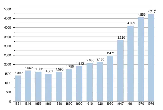 Les chiffres des années 1831 à 1970 tiennent compte des chiffres des anciennes communes fusionnées.