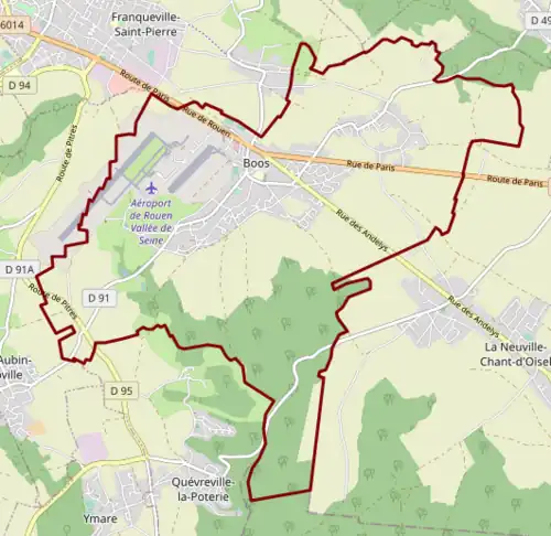Boos se trouve le long de la route départementale 6014.