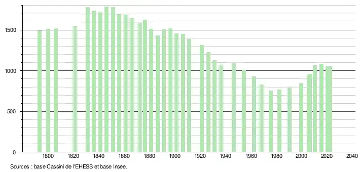- ↑ Fiches Insee - Populations de référence de la commune pour les années 2006, 2007, 2008, 2009, 2010, 2011, 2012, 2013, 2014, 2015, 2016, 2017, 2018, 2019, 2020, 2021 et 2022.