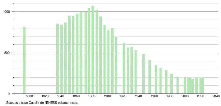 - ↑ Fiches Insee - Populations de référence de la commune pour les années 2006, 2007, 2008, 2009, 2010, 2011, 2012, 2013, 2014, 2015, 2016, 2017, 2018, 2019, 2020, 2021 et 2022.