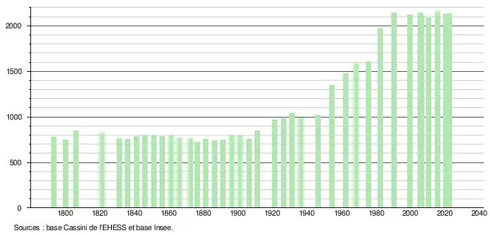 - ↑ Fiches Insee - Populations de référence de la commune pour les années 2006, 2007, 2008, 2009, 2010, 2011, 2012, 2013, 2014, 2015, 2016, 2017, 2018, 2019, 2020, 2021 et 2022.