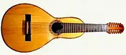 Il est taillé à partir de trois pièces de bois (cheviller, manche, caisse de résonance). La table d'harmonie est clouée. La caisse de résonance très profonde, en forme de trou de serrure, est resserrée près du manche. Celui-ci se prolonge sur la table d'harmonie jusqu'à la petite ouïe située en son milieu. Il a cinq doubles cordes en métal accordées (comme une guitare : la - ré - sol - si - mi) à l'octave et des frettes très larges. Il existe plusieurs modèles :
