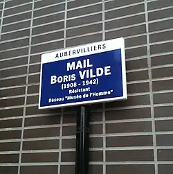 Dans la commune de Fontenay-aux-Roses, une rue porte le nom de Boris Vildé ainsi qu'un square attenant à cette rue. Le , la ville d'Aubervilliers rendait hommage à Boris Vildé en dédiant un mail à son nom[13].
