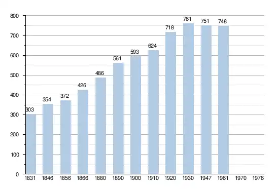 - Sources : INS, Rem. : 1831 jusqu'en 1970 = recensements, 1976= nombre d'habitants au 31 décembre[2].
