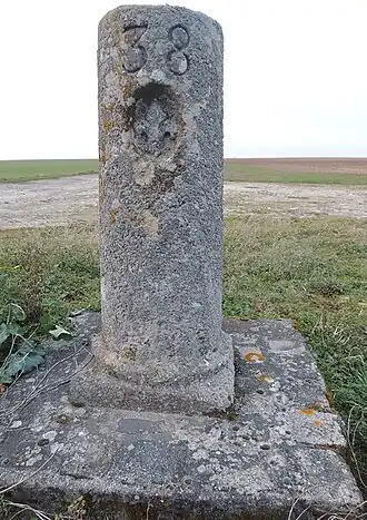 - 1 2 3 « Borne fleurdelysée no 38 », notice no PA00086865, sur la plateforme ouverte du patrimoine, base Mérimée, ministère français de la Culture.