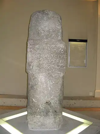 - ↑ « Borne milliaire dans l'établissement thermal », notice no PA00093338, sur la plateforme ouverte du patrimoine, base Mérimée, ministère français de la Culture