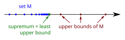 En mathématiques, les notions de borne supérieure et borne inférieure d'un ensemble de nombres réels interviennent en analyse, comme cas particulier de la définition générale suivante : la borne supérieure (ou le supremum) d'une partie d'un ensemble (partiellement) ordonné est le plus petit de ses majorants. Une telle borne n'existe pas toujours, mais si elle existe alors elle est unique. Elle n'appartient pas nécessairement à la partie considérée. Dualement, la borne inférieure (ou l'infimum) d'une partie est le plus grand de ses minorants.