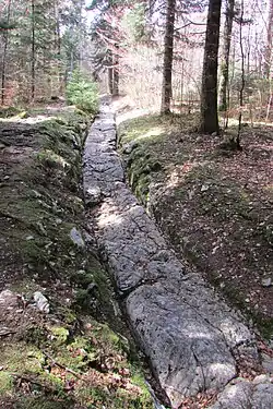 Le sillon droit gravé sur le dessus indique que la frontière continue en ligne droite des deux côtés jusqu'à la prochaine borne.