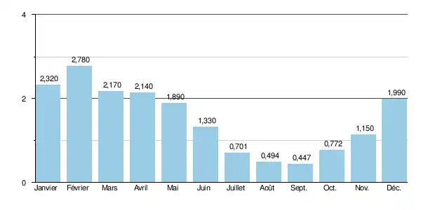 Sur ce site et cette période, le module de la rivière est de 1,51 m3/s[13].