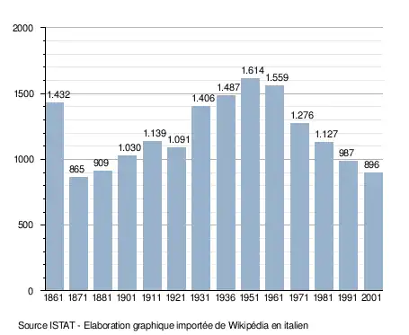 - ↑ (it) Popolazione residente e bilancio demografico sur le site de l'ISTAT.