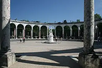 Au centre de la colonnade se trouve un moulage du groupe sculpté de François Girardon, l'Enlèvement de Proserpine par Pluton, depuis 1990. L'original est conservé depuis 1955 dans le vestibule nord de l'Orangerie[10]du château.
