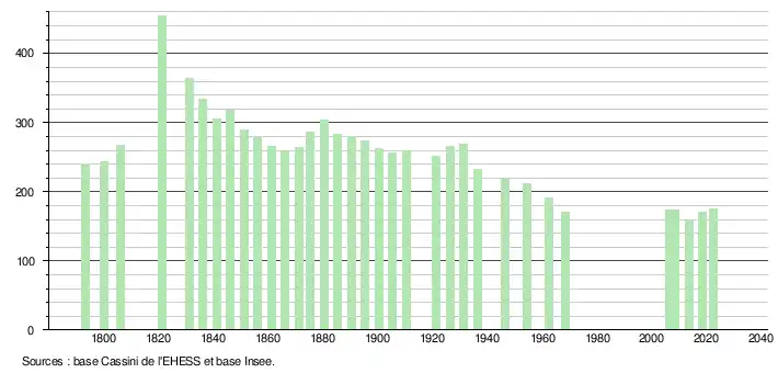 176 hab. (2022 en évolution de +8,64 % par rapport à 2016)