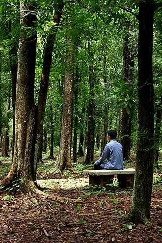 Personne trouvant la sérénité dans le jardin botanique de Purwodadi, reconnu par le BGCI[1]