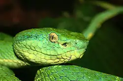 Ces serpents sont vert émeraude tirant parfois sur le bleu, avec parfois de fines bandes jaunes. Le dessous est blanc-beige voire blanc-jaune. La tête est verte, avec des iris jaunes. Les jeunes sont en général plus sombres, marron avec des marques sombres.