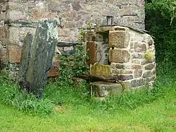 - Le lavoir du Lapig, entouré de pierres de schistes ardoisiers.