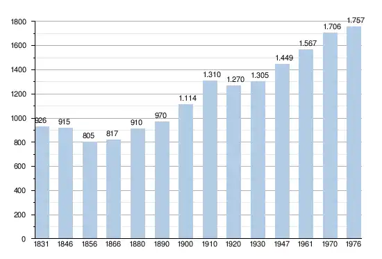 - Sources : INS, Rem. : 1831 jusqu'en 1970 = recensements, 1976 = nombre d'habitants au 31 décembre[2].