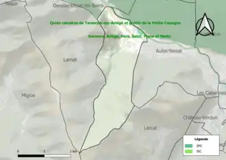 - ↑ « ZNIEFF les « parois calcaires et quiès de la haute vallée de l'Ariège » - fiche descriptive », sur le site de l'inventaire national du patrimoine naturel (consulté le ).