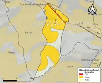 Les communes limitrophes sont Larcat, Larnat, Ornolac-Ussat-les-Bains et Aulos-Sinsat.