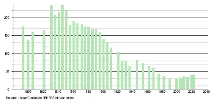 - ↑ Fiches Insee - Populations de référence de la commune pour les années 2006, 2007, 2008, 2009, 2010, 2011, 2012, 2013, 2014, 2015, 2016, 2017, 2018, 2019, 2020, 2021 et 2022.