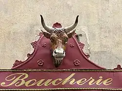 La devanture des boucheries était peinte en rouge sang. Jusqu'au début du XXe siècle, le boucher s'occupait aussi de l'abattage du bétail.