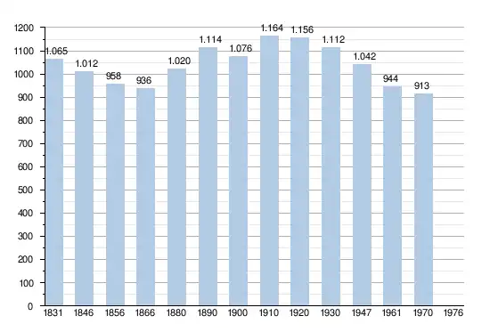 - Sources : INS, Rem. : 1831 jusqu'en 1970 = recensements[3].