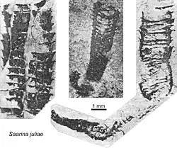 - ↑ Cf. par ex. Jerzy Dzik, Kazimiera Lendzion, « The oldest arthropods of the East European Platform. », Lethaia, vol. 21, no 1, , p. 29–38, (DOI 10.1111/j.1502-3931.1988.tb01749.x)