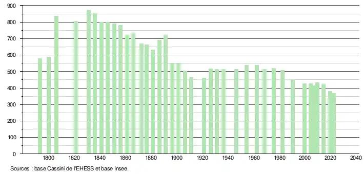 - ↑ Population municipale de référence en vigueur au 1er janvier 2025, millésimée 2022, définie dans les limites territoriales en vigueur au 1er janvier 2024, date de référence statistique : 1er janvier 2022.