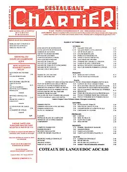 - ↑ Bernard Thomasson, « L'histoire à la carte. Le bouillon Chartier »
