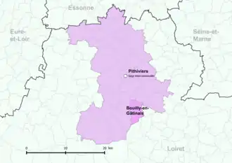 - ↑ « Liste des communes composant l'aire d'attraction de Pithiviers », sur le site de l'Insee (consulté le ).