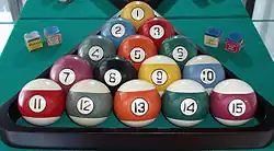 Boules de billard (de gauche à droite):