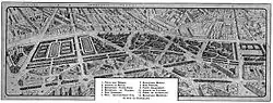 - ↑ Plan cadastral de la ville de Paris établi d'après les documents officiels les plus récentes et comprenant l'Exposition universelle de 1900, par Max Mabyre « Plan cadastral 1900 », sur gallica.bnf.fr ou plan de détail du quartier sur Fortifs gouvion.jpg.