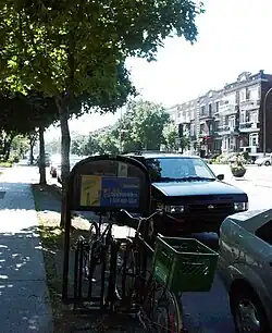 - Un des édicules de la station de Métro Laurier donne sur le boulevard Saint-Joseph.