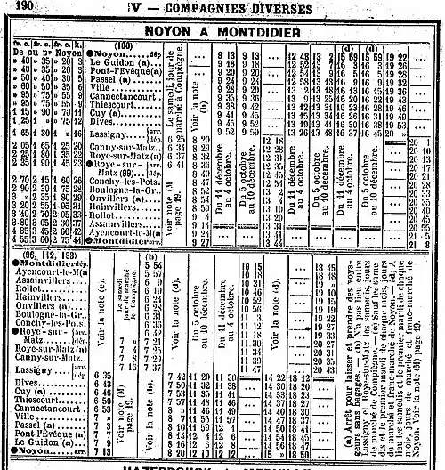 - ↑ « Le réseau de Noyon et la ligne Milly-Formerie : Histoire des voies ferrées d'intérêt local dans l'Oise », dans Claude Wagner, Voies métriques en Picardie, Auray, LR Presse, (ISBN 978-2903651749), p. 70-137.
