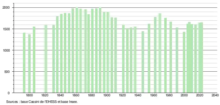 - ↑ Fiches Insee - Populations de référence de la commune pour les années 2006, 2007, 2008, 2009, 2010, 2011, 2012, 2013, 2014, 2015, 2016, 2017, 2018, 2019, 2020, 2021 et 2022.