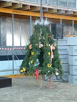 Lorsque le gros œuvre de la construction d'un bâtiment est achevé, les ouvriers placent un arbrisseau ou une grosse branche feuillue sur le sommet de la charpente ou sur le point le plus élevé de la construction, généralement la cheminée, ou sur la grue qui a opéré sur ce chantier. Le propriétaire du bâtiment offre à boire ou remet un pourboire à l'équipe du chantier.