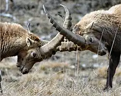 Cette mue est également à l'origine de démangeaisons que les bouquetins mâles tentent de calmer à l'aide de leurs longues cornes.