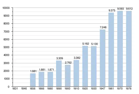 - Source : DGS - Remarque: 1831 jusqu'à 1981=recensement; depuis 1990=nombre d'habitants chaque 1er janvier[3]