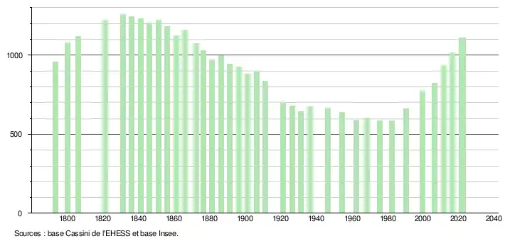 - ↑ Fiches Insee - Populations de référence de la commune pour les années 2006, 2007, 2008, 2009, 2010, 2011, 2012, 2013, 2014, 2015, 2016, 2017, 2018, 2019, 2020, 2021 et 2022.