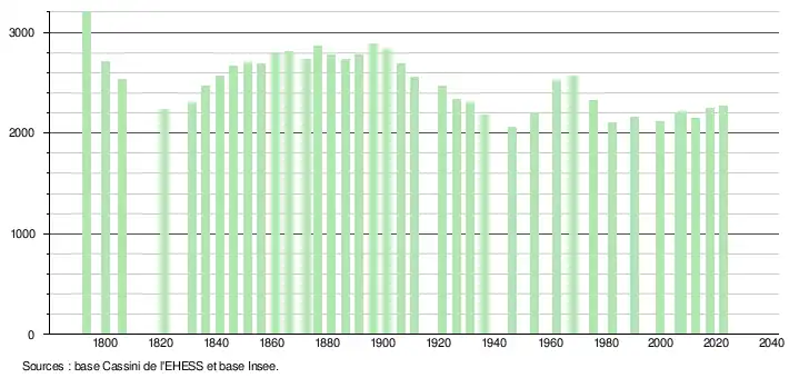 - ↑ Population municipale de référence en vigueur au 1er janvier 2025, millésimée 2022, définie dans les limites territoriales en vigueur au 1er janvier 2024, date de référence statistique : 1er janvier 2022.