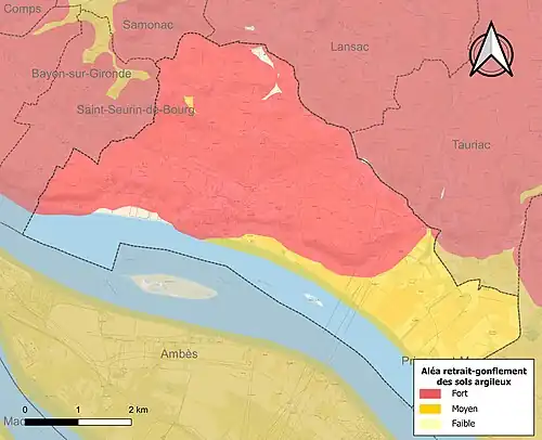 Le retrait-gonflement des sols argileux est susceptible d'engendrer des dommages importants aux bâtiments en cas d’alternance de périodes de sécheresse et de pluie. 81,6 % de la superficie communale est en aléa moyen ou fort (67,4 % au niveau départemental et 48,5 % au niveau national). Sur les 1 001 bâtiments dénombrés sur la commune en 2019, 1 001 sont en aléa moyen ou fort, soit 100 %, à comparer aux 84 % au niveau départemental et 54 % au niveau national. Une cartographie de l'exposition du territoire national au retrait gonflement des sols argileux est disponible sur le site du BRGM[29],[Carte 2].