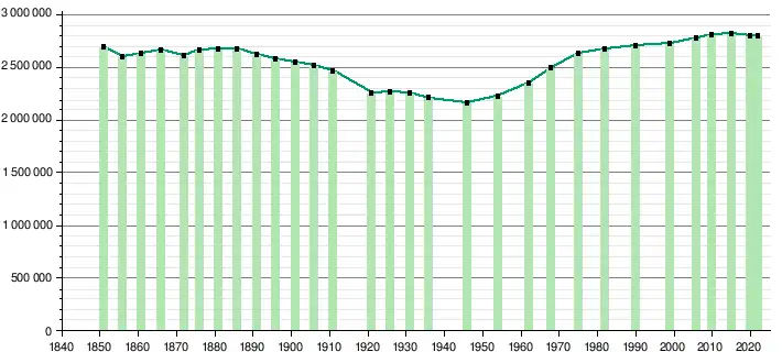 Sa population s'élevait à 2 803 977 habitants en 2022, ce qui en faisait la troisième région la moins peuplée et la deuxième la moins densément peuplée (58,7 hab./km2).